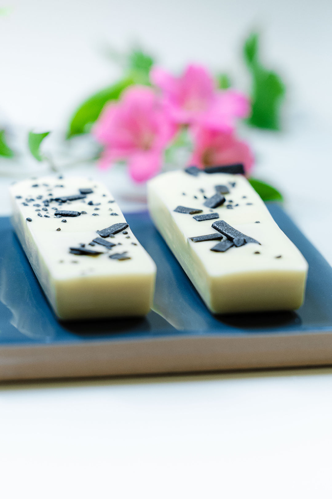 Lakridscreme – En overraskende kombination af sødme og salt fra lakrids. Pyntet med salmiakflager og lakridsstøv.